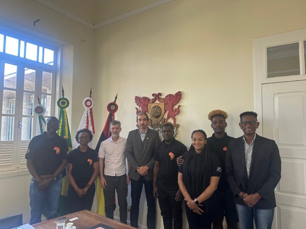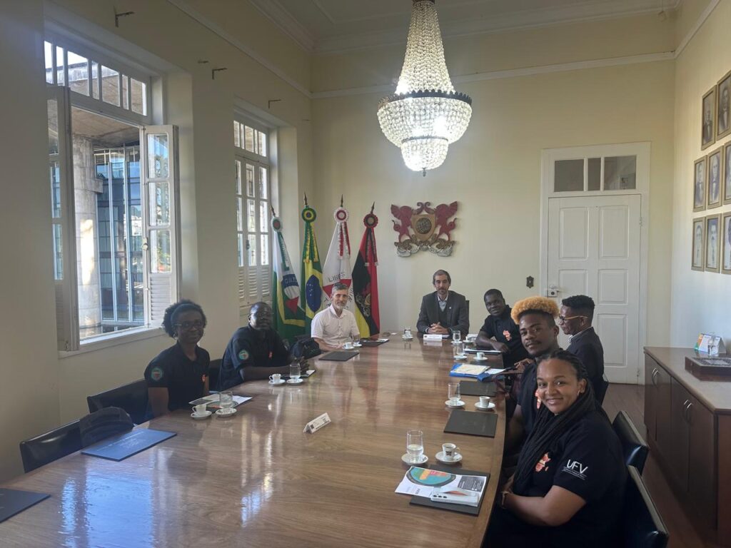 On Tuesday, July 29, 2025, the board of the African Students Association of Viçosa (AEAV) paid a courtesy visit to the Rector of the Federal University of Viçosa (UFV). The meeting was also attended by Professors Vladimir Oliveira Di Iorio, Director of the Office of International Relations (DRI), and José do Carmo de Araújo, both long-standing supporters of the association and of African student initiatives at the university.