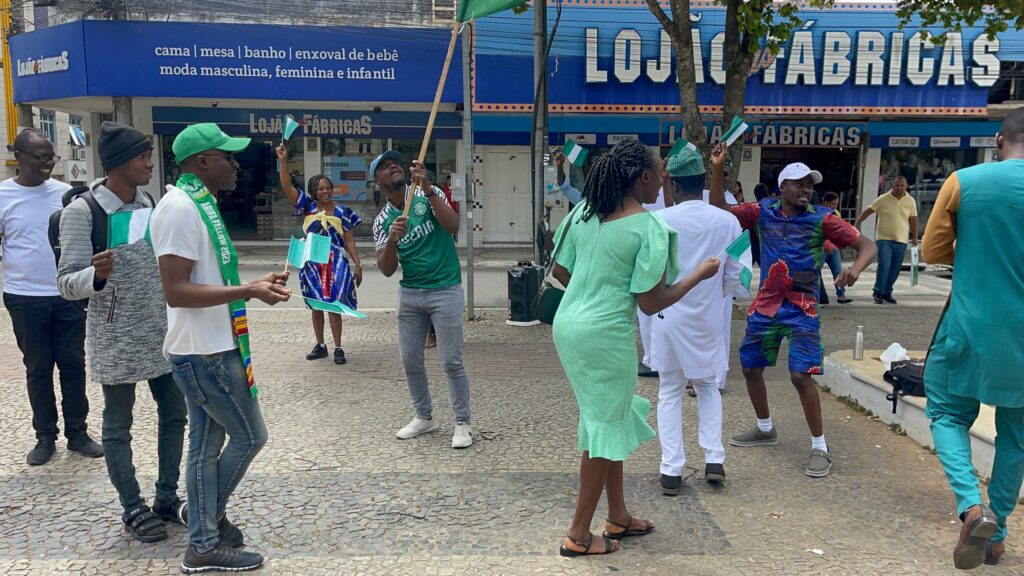 Mais do que um simples desfile, a caminhada foi uma demonstração de orgulho cultural e da presença vibrante da comunidade nigeriana em Viçosa. Vestidos com as cores da Nigéria e carregando faixas, os participantes compartilharam momentos de alegria em fotos e vídeos, atraindo a atenção dos moradores e transeuntes no centro da cidade.